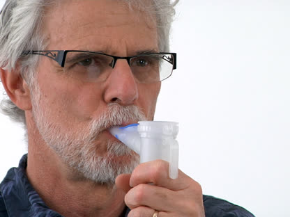- Take deep, slow breaths through the mouthpiece or mask. Hold each breath for about 2 seconds.