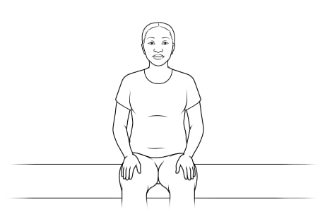 You start by sitting up tall on the exam table. Your legs will hang off the edge.