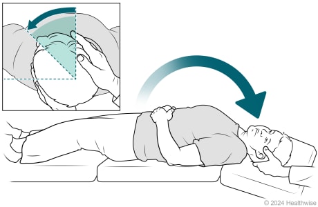 • The doctor will hold your head in position and help you roll your body in the same direction that your head is facing. Your face will look toward the floor. You will be lying on the same side that causes the worst vertigo. (For example, if you are looking to your right, you will roll onto your right side.) The doctor will hold you in this position for at least another 20 seconds.