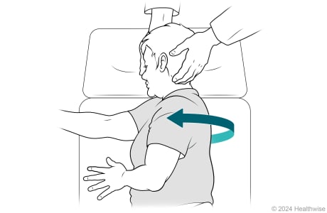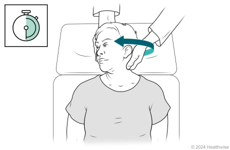 • Then the doctor will turn your head to the other side. You don't need to lift your head. The doctor will hold you in this position for at least 20 seconds.