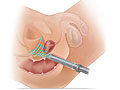 In rare cases, sterile saline is put in the uterus through a thin tube (catheter). This allows the doctor to look at the inside of the uterus (hysterosonogram).
