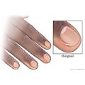 - Hangnails. A hangnail may lead to a minor infection next to your nails (paronychia). This can cause the skin around the nails to become swollen and tender.