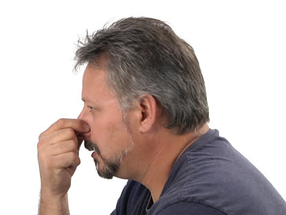 - Use your thumb and forefinger to firmly pinch the soft part of your nose shut.
