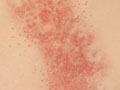 Is the rash a red, peeling rash that leaves very large areas raw and oozing fluid?