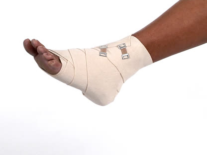 - Compression. An elastic compression wrap will help decrease swelling. Wear it for the first 24 to 36 hours. A protective brace should also be worn if you try to bear weight on your injured ankle. Don't apply the wrap too tightly. Loosen the bandage if it gets too tight. Signs that the bandage is too tight include numbness, tingling, increased pain, coolness, or swelling in the area below the bandage. Compression wraps don't protect your ankle, but they do remind you to be careful of your ankle.