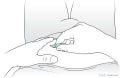 - Slightly pinch a fold of skin between your fingers and thumb of one hand.