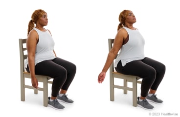 - Stand up straight with your feet shoulder-width apart. Or sit up straight in a chair.