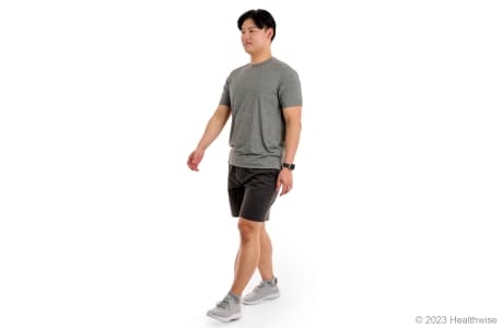 Stand up straight. Leaning forward or backward as you walk can put strain on your back.