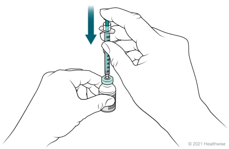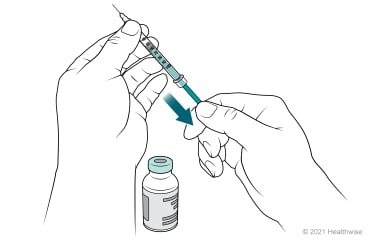 Pull the plunger of the syringe back and draw air into the syringe equal to the number of units of insulin to be given.