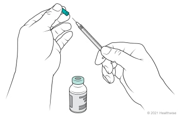 Remove the needle from the bottle. Now you are ready to give the shot.