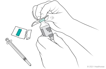 If the rubber lid of the insulin bottle is dirty, clean it with an alcohol wipe or a cotton ball dipped in alcohol. Let the alcohol dry.
