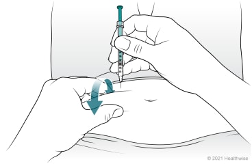 Slightly pinch a fold of skin between your fingers and thumb of one hand.